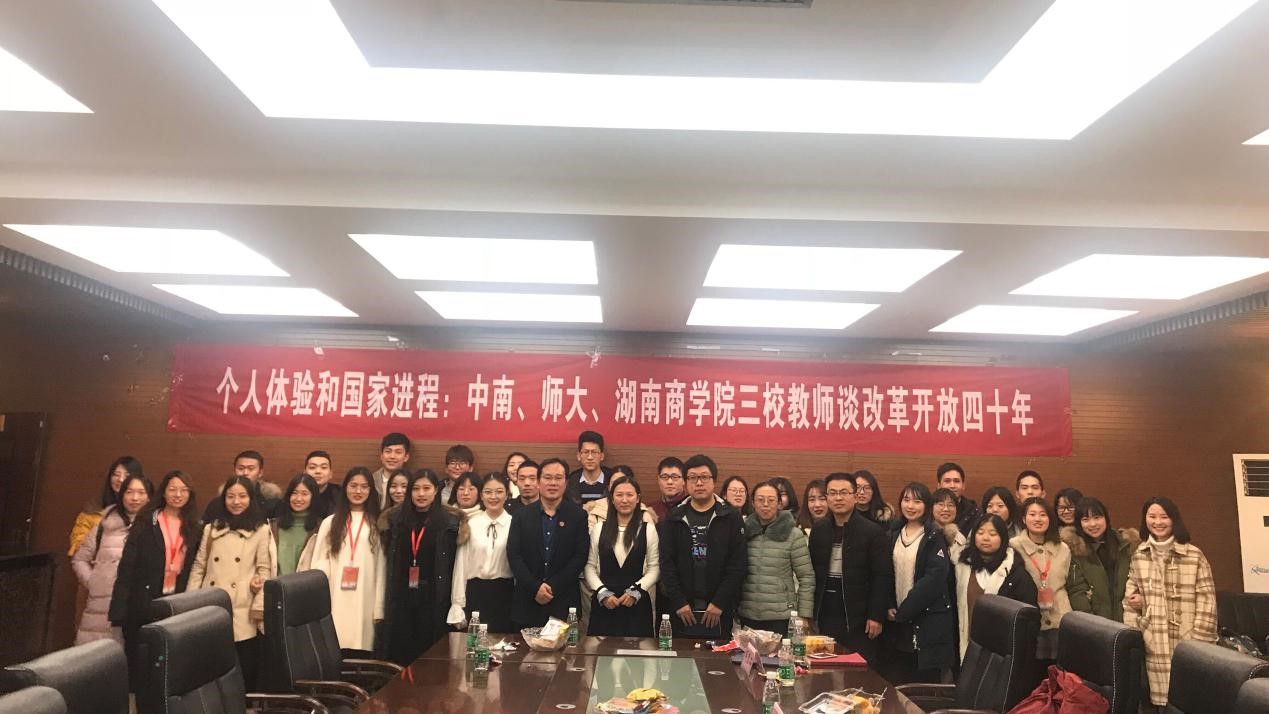 12月11日晚上7点,美高梅MGM电子娱乐游戏第十三届“东方红”学术论坛第三期于第三教学楼609会议室成功举行。论坛以“个人体验和国家进程:中南、师大、湖南商学院三校教师谈改革开放四十年”为主题,邀请湖南商学院刘兴云老师、湖南师范大学邓验老师、中南大学胡晓老师作为主讲嘉宾。院党委副书记杨雪宾、学工办主任秘金雷、辅导员邹秉虹老师以及中南大学、湖南大学、湖南商学院博士生、硕士生、本科生代表参加了本次论坛。本次论坛由易颜卿同学主持。